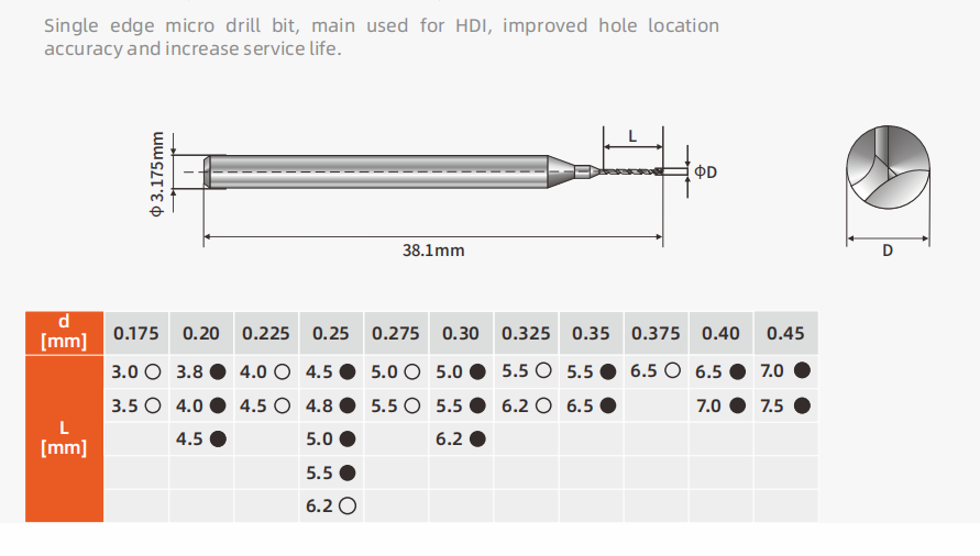Single Edge Micro Drill Bit 3.0mm-7.5mm HDI Carbide PCB Drill Bits Images |
